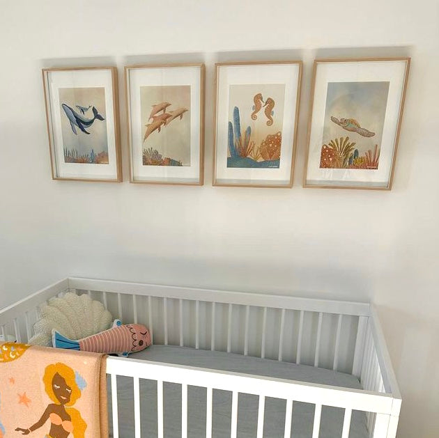 I have two sets of prints, from two different collections for both my daughters rooms and could not be more in love. I had been a fan of Karina’s work for years and as soon as I had the opportunity I grabbed these prints and styled my girls rooms around them! The detail and artistry is incredible and they will absolutely grow with the girls as they get older. I constantly get comments on how beautiful they are by visitors. I am so so in love with these prints and will be adding more around our home as time goes on!